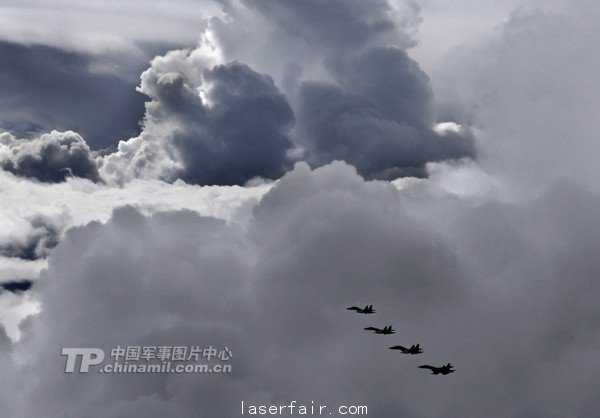 戰機在烏(wu) 雲(yun) 翻滾的蒼穹中穿行。(劉應華 攝)
