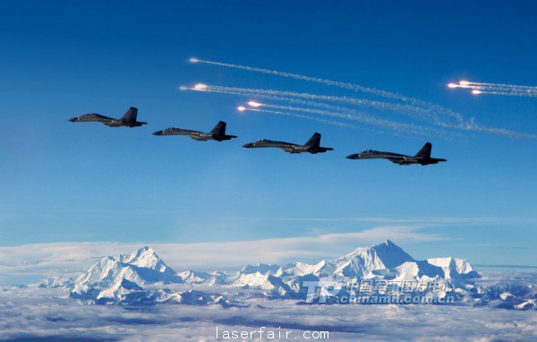 戰機在通過珠穆朗瑪上空施放電磁幹擾。(劉應華 攝)