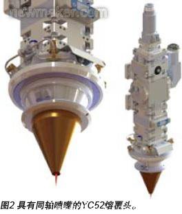 圖2展示了激光熔覆頭。與(yu) 激光熔覆相關(guan) 的主要好處之一就是能夠很好地控製熱量輸入,從(cong) 而實現兩(liang) 相沉積的金屬基複合(MMC)結構: