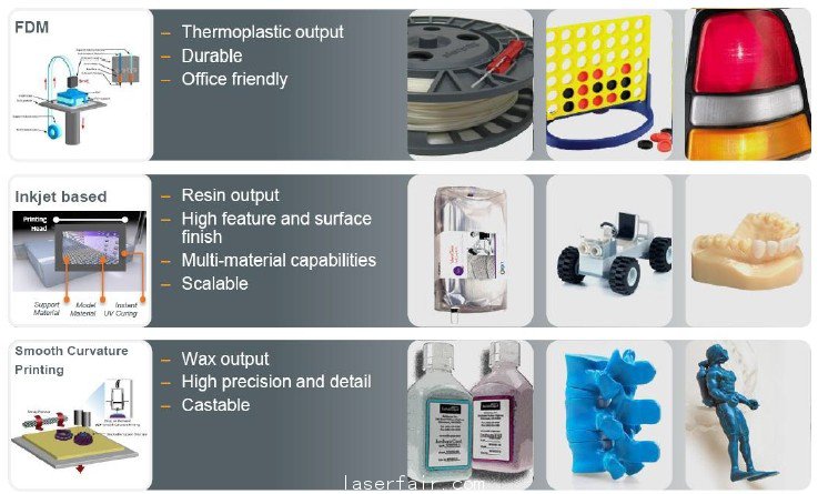 Stratasys共擁有四大技術平台:(1)FDM技術,使用熱塑性材料,製造的產(chan) 品耐久性良好、環境友好;(2)PolyjetMatrix技術,使用樹脂類材料,製造的產(chan) 品細節豐(feng) 富、表麵光潔度高,可同時使用多種材料;(3)SmoothCurvaturePrinting技術,使用熱塑性材料,製造的蠟模等具有高精密性;(4)Extrudedplasticfilament技術,使用熱塑性擠壓型材,主要應用於(yu) 桌麵級產(chan) 品。
