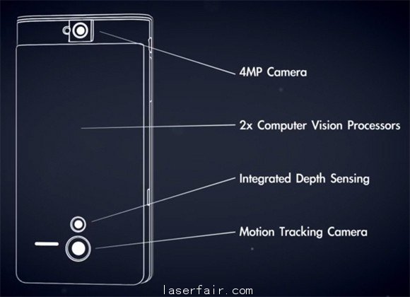 這款智能手機的捕捉圖像傳(chuan) 感器位於(yu) 手機背部,這個(ge) 傳(chuan) 感器可實現跟蹤拍攝和深度傳(chuan) 感,每秒可產(chan) 生25萬(wan) 的測量值。而來自傳(chuan) 感器的信息則由兩(liang) 個(ge) 專(zhuan) 門的Myriad 1處理器加工。這兩(liang) 個(ge) 處理器是由著名的Movidius公司為(wei) 穀歌公司專(zhuan) 門研製的,這種處理器的特點是能耗極低。