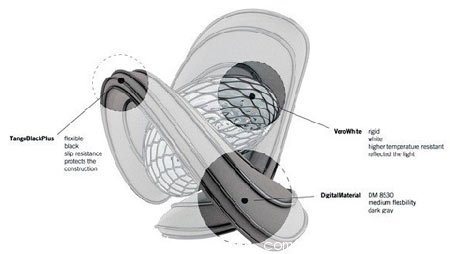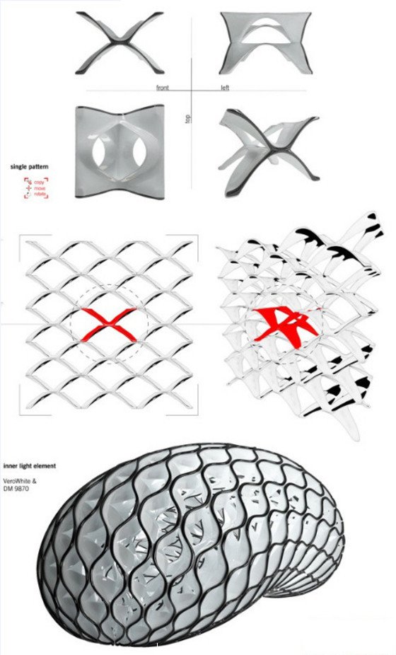 Voxel Studio設計室利用高級3D打印技術設計創作難以想象的奇幻外型,例如這款特別的蠶繭LED燈具,蠶繭是由蠶幼蟲吐絲(si) 形成的,而這項3D打印技術則是用3D打印機的噴嘴,精確控製噴出液體(ti) 感光樹脂,然後通過紫外線照射讓其迅速硬化。這款LED燈總共使用了白、灰、黑三種顏色,其中白色感光樹脂堅固,用於(yu) 提供了燈具結構,並具有良好的光漫反射性,作為(wei) 鏤空燈罩是再好不過。灰色材料軟硬度折中,黑色則用於(yu) 勾勒表麵和線條,提供對比顏色並保護表麵,整體(ti) LED燈具通過計算機設計,全都由3D打印機製作,酷似鳥巢的獨特造型 ,LED燈泡放置其中,光芒似破繭而出的視覺效果。