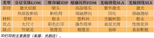 其他工藝 - 除了以上這些主流技術外,還有一些其他3D打印工藝,比如有一種稱為(wei) 選擇性激光熔融(SLM)。該工藝與(yu) SLS類似,但是它會(hui) 使整個(ge) 粉末熔化,而不是在低溫下熔化粉末顆粒。這與(yu) 電子束熔煉(EBM)相似,隻不過其采用的是電子束,而不是紅外激光。還有一種完全不同的工藝稱為(wei) 分層實體(ti) 製造(LOM),它以片材如紙片、塑料薄膜或金屬薄片為(wei) 原料,按照設計數據將這些片材切割成形狀,再一層一層粘合在一起,最終形成三維物體(ti) 。