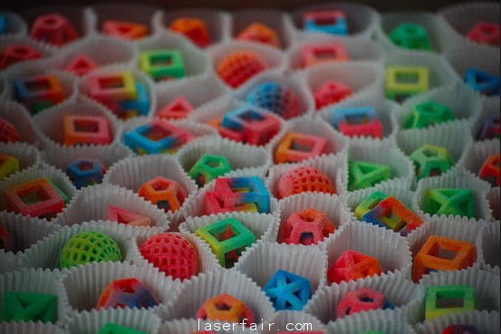 這些糖果五顏六色,如雕塑般,由3D Systems利用該公司的ChefJet係列打印機打印出,使用了糖、水、酒精作為(wei) 3D打印的原材料,嚐起來有甜味和水果味。