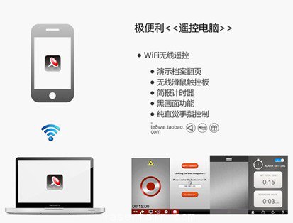 iPin激光釘比傳(chuan) 統激光演示器小了幾十倍,功能卻強大了許多。iPin激光釘的App應用程序有直覺式手勢控製與(yu) 軟體(ti) 功能,可讀取手指直覺移動來進行翻頁及發射激光光束。另外,這一程序還可以直接控製電腦滑鼠遊標。iPin激光釘具有低耗能功能,不需要使用電池,透過手機的電動驅動,不會(hui) 因更換新電池而影響演示,隻要手機有足夠的電量,就可以立即使用。