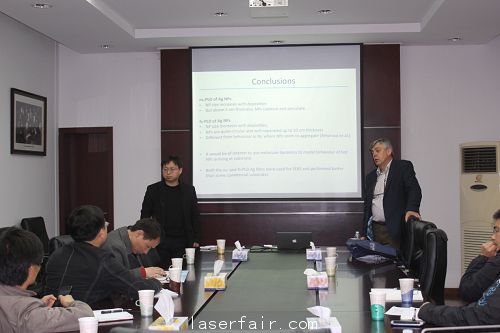 在學術交流上,青促會(hui) 小組王俊介紹了Trinity College Dublin的發展曆史以及Prof. James Lunney在研究工作上的一些趣事。隨後,James Lunney教授作了題為(wei) Deposition of nanoparticle metal films using nanosecond and femtosecond lasers 的報告,與(yu) 會(hui) 人員就該研究成果進行了熱烈的交流和探討。學術報告結束後,Prof. James Lunney 和Prof. Hongzhou Zhang在青促會(hui) 成員的帶領下,參觀了高功率激光物理聯合實驗室、強場激光物理國家重點實驗室和中科院強激光材料重點實驗室,雙方進行了深入的交流,為(wei) 日後可能的國際合作做了有效的鋪墊。