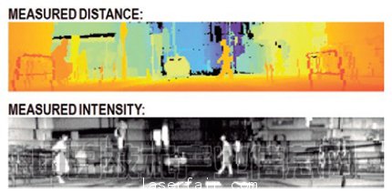 經實驗確認,識別出了假想為(wei) 穿著黑衣服的行人的板狀物體(ti) (寬30cm,反射率為(wei) 9%)。反複進行了1000次的結果,80m以內(nei) 的識別率達到90%以上。