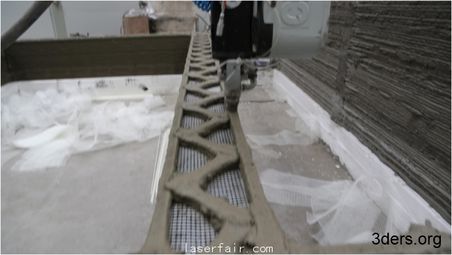 匯信使用的巨型3D打印機體(ti) 積為(wei) 150(L) x 10(W) x 6.6(H) ,它能在一小時之內(nei) 打印出完整的建築,使用的“墨水”是高標號水泥和玻璃纖維,像傳(chuan) 統打印機一樣,也是將那些材料一層一層的積累起來。