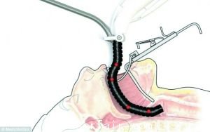 該儀(yi) 器從(cong) 喉嚨滑入,不需要開刀。