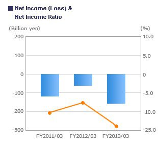 圖3,瑞薩電子2011~2013財年的淨收入(虧(kui) 損)額以及淨收入(虧(kui) 損)率(單位:億(yi) 日元)