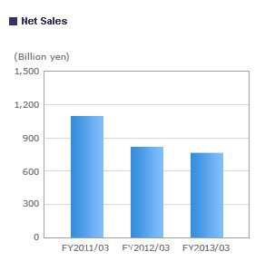 圖2,瑞薩電子2011~2013財年的淨銷售額(單位:億(yi) 日元)