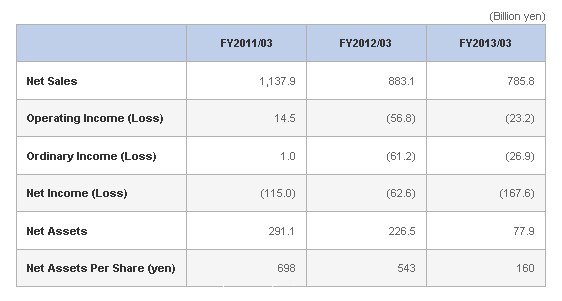 圖1,瑞薩電子2011~2013財年的財務狀況(單位:億(yi) 日元)