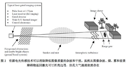 相同的時鍾可以控製檢測器的開關(guan) ,因此,隻有物體(ti) 附件範圍的後向散射被觀察到,也就是說在能力範圍內(nei) 解決(jue) 目標,隻要足夠照明達到目標並返回到傳(chuan) 感器,範圍內(nei) 輸出幹預散射。在目標前/後消除散射和混亂(luan) 是有源電光傳(chuan) 感的一項重要功能(如圖2 所示)。