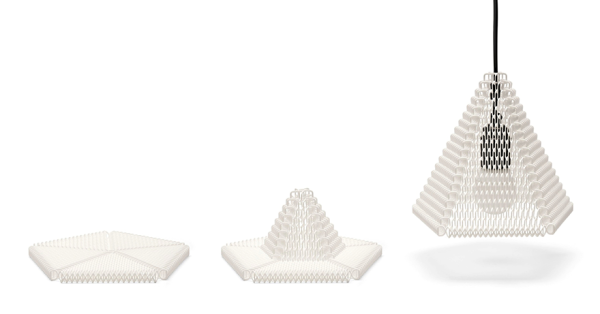 Cornelissen介紹說:“ZOOM燈罩攤在桌麵上是平的,折疊起來也很軟,提起來就是一個(ge) 線條清晰、漂亮的燈罩。半透明結構屏蔽了燈泡的眩光,同時還能有效地透射光。
