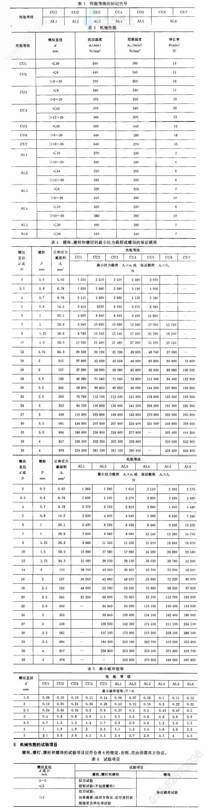 在常溫下按第7章規定的方法進行試驗時,螺栓、螺釘、螺柱和螺母的機械性能和工作性能應符合表3~表5的規定。
