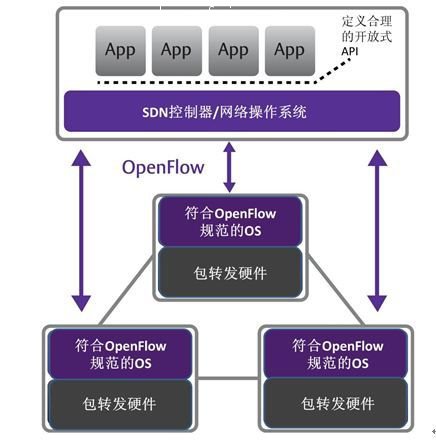 人們(men) 經常把OpenFlow和SDN混用,但是它們(men) 並不一樣。OpenFlow僅(jin) 僅(jin) 是整個(ge) SDN架構上的一個(ge) 構件,是一種開放式標準,用於(yu) 實現一種通訊協議,使控製平麵能夠與(yu) 轉發平麵進行交互。作為(wei) 一種開放式標準,它由OpenFlow Consortium控製。OpenFlow並不是目前已有的(或正在開發中的)唯一一種麵向SDN的協議。由The Open Networking Lab (ON.Lab)領導的開放源代碼網絡OS(即ONOS)就是另外一種選擇。