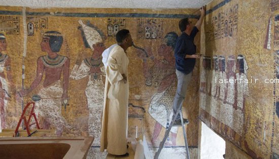 圖坦卡蒙墓葬建於(yu) 公元前1327年,1922年由霍華德·卡特發現,但隨後幾十年的旅遊業(ye) 讓近乎完美的墓葬不堪重負了。遊客們(men) 呼吸所產(chan) 生的水汽使牆繪和牆壁遭到了損壞,溫度的大幅度變化也使得畫上油漆脫落,裂縫擴大。