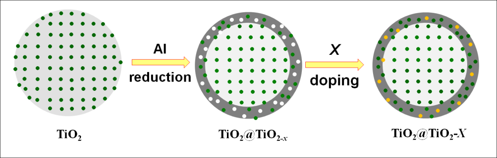 最近,中國科學院上海矽酸鹽研究所與(yu) 北京大學化學學院開展了合作研究,黃富強、汪宙、楊重寅、林天全等科研人員原創地發展出多種新型製備方法(氫等離子法、鋁還原法、二步非金屬摻雜法),大幅提高了太陽光譜中可見光和近紅外光的吸收,效果明顯。這些最新發現的黑色二氧化鈦納米晶,不同於(yu) 高溫氫氣還原的黑色氧化鈦,為(wei) 一種核殼結構,核區仍為(wei) 結晶的二氧化鈦,外殼為(wei) 無定型的結構,其中無序的外殼是使白色二氧化鈦變成黑色的功能區域,無序的外殼包含氧空位或非金屬X摻雜(X=H、N、S、I)。該結構可導致對太陽光的吸收高達85%,遠優(you) 於(yu) 文獻報道(30%)。