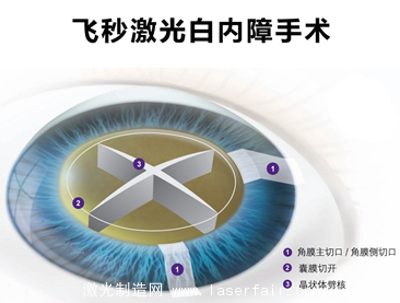 手術步驟:環形前囊膜切口→激光切割碎核→角膜切口
