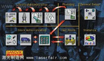 山特維克可樂(le) 滿的AutoTAS是一個(ge) 高度集成係統,可與(yu) MRP/PPS係統、CAM係統、presetters、Pater Noster、code-carriers等集成在一起。它提供對切削刀具、量具、夾具整個(ge) 壽命周期的控製,覆蓋了從(cong) 采購、統計與(yu) 報告、刀具室計劃支持和質量管理,集成了從(cong) 設計到製造的全過程。由於(yu) AutoTAS是由11個(ge) 充分集成的、但又是分離的模塊組成,因此係統可按用戶的要求以公司級別或個(ge) 人用戶級別進行定製。同時它還具備用於(yu) 添加新功能的保護性升級途徑,從(cong) 而可確保將來不斷變化的需要。