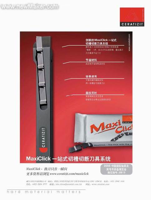 森拉天時有特色的氮化陶瓷刀片還有:擁有特高韌度的氮化陶瓷CTN3110,是特別為(wei) 轉軸工業(ye) 而設,用於(yu) 重切削加工。CTM3110氮化陶瓷,是配合CVD化學塗層而製成的陶瓷刀片,主要應用於(yu) 加工一些會(hui) 與(yu) 刀片產(chan) 生極大化學作用的材料上,例如鉻化合金鐵及球墨鑄鐵“GGG40”。CTS3110氮化鋁混合陶瓷,專(zhuan) 為(wei) 預硬轉軸和預硬鑄鐵的精加工而設計。(森拉天時公司供稿)