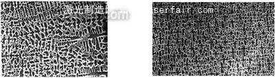 在實驗中,我們(men) 在熔覆材料內(nei) 加了2%wt左右的Y2O3的稀土氧化物,實驗表明,它有效促進了塗層材料中Si、B等元素的脫氧造渣反應。同時,稀土元素可減小殘渣與(yu) 熔體(ti) 的表麵張力,防止氧化。因此,少量稀土元素的應用可減少塗層內(nei) 部的夾雜等缺陷,改善熔覆層的表麵質量。此外,稀土元素還有利於(yu) 提高熔覆合金的結晶成核率,有效地細化塗層晶粒。如圖4、5所示,提高熔覆層的強韌性。這是因為(wei) :第一,稀土氧化物Y2O3在激光作用下發生分解,形成活性銥離子吸附在晶核表麵,阻止晶核快速成長,使晶粒進一步細化,尤其使二次枝晶臂間距減小。第二,稀土元素釔與(yu) 鐵、鎳元素可相互降低活度,增加溶解度,有利於(yu) 合金化。