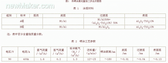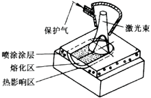 熱噴塗激光重熔二步法工藝即先用火焰、電弧、等離子或爆炸噴塗等方法,在基材上製備金屬或陶瓷塗層,然後在使用保護氣氛的條件下用激光束進行掃描熔化處理,如圖1所示。
