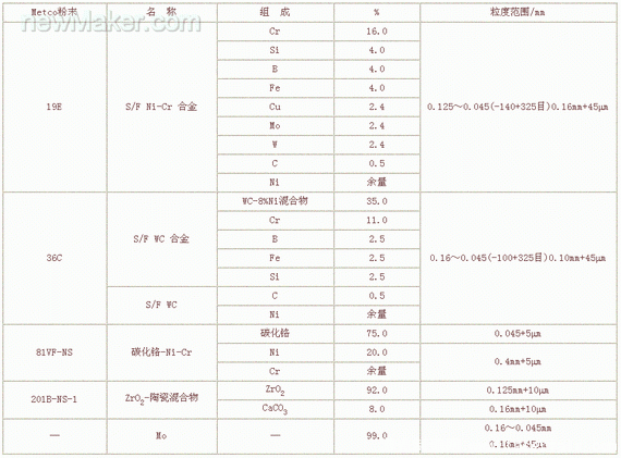 表 3 AISI鋼激光合金化前等離子噴塗的材料