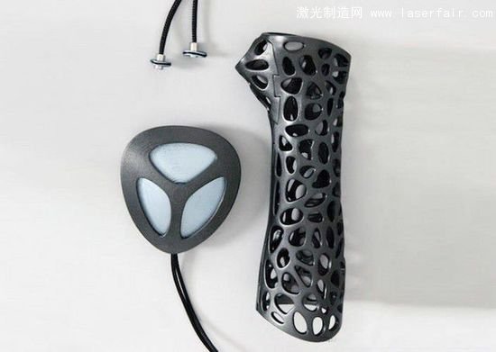 多孔結構設計與(yu) 傳(chuan) 統的石膏固定相比的好處就在於(yu) 通風良好,而傳(chuan) 統石膏固定由於(yu) 封閉性易造成皮膚潰瘍、過敏等症狀。與(yu) 此同時,丹尼斯卡拉薩欣加入了低頻超聲波,每天對骨折部位進行20分鍾的超聲波透射,這是一項已知的能夠加快骨骼生長的技術,用在這裏有望減少骨折病患38%的康複時間。