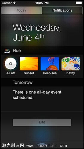 智能LED燈泡製造商飛利浦昨(5)日預告他們(men) 計劃在ioses 8通知中心整合一個(ge) 可以控製飛利浦智能LED燈泡的部件,並公布預覽截圖。飛利浦在Twitter上公布的圖片隻是一個(ge) 概念原型,但它確實表明了該公司正在開發支持未來ioses 8移動操作係統新的widget功能。這個(ge) 概念圖顯示了一個(ge) 專(zhuan) 用的Hue小部件,上麵帶有“全部關(guan) 閉”按鈕,以及三個(ge) 光線“場景”,用戶可以從(cong) 通知中心快速選擇。