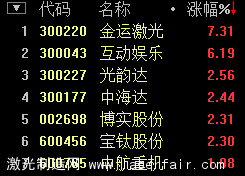周四上午,3D打印概念相關(guan) 個(ge) 股表現出色,截至中午收盤時,板塊平均上漲1.09%。個(ge) 股方麵,金運激光上漲7.31%,互動娛樂(le) 上漲6.19%。