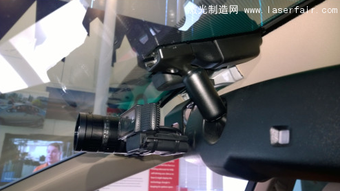 在車內(nei) 還可以看到兩(liang) 個(ge) 攝像頭,一個(ge) 向內(nei) 一個(ge) 向前。其中設在後視鏡上、向前的攝像頭帶有一個(ge) 自動對焦的專(zhuan) 業(ye) 鏡頭。這是方向傳(chuan) 感器,用於(yu) 判斷車輛前行方向,具體(ti) 作用類似於(yu) 人體(ti) 的內(nei) 耳(負責傳(chuan) 感頭部速度)。