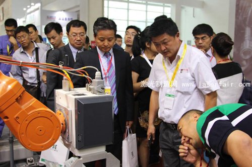 與(yu) 會(hui) 人員參觀華工激光法利萊三維焊接機械手