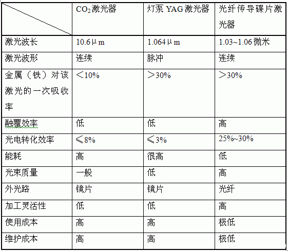 相對傳(chuan) 統的激光熔覆設備采用的激光器是CO2激光器和燈泵YAG激光器,通快公司采用的是新一代光纖傳(chuan) 導碟片激光器。同等條件下碟片激光器具有如下優(you) 勢: