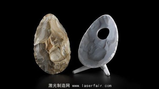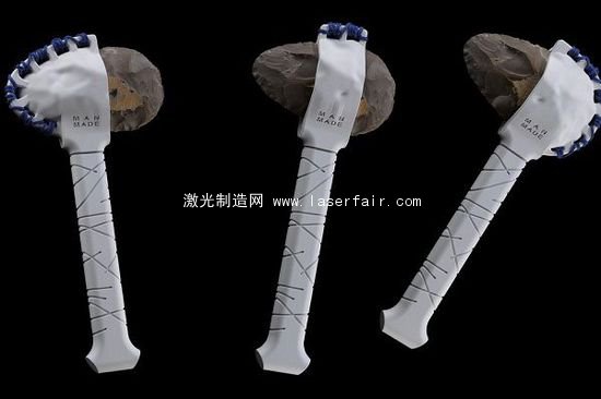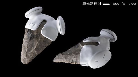 在人類進化的百萬(wan) 年曆史上,結構簡單的“石手斧”曾經扮演了相當重要的角色。然而在科技日益發展的今天,人類卻很難想象這款“革命性的工具”到底長啥樣。幸運的是,在Dove Ganchrow和Ami Drach兩(liang) 位設計師的“Man Made”係列作品中,就通過3D打印技術,重現了這款人類曆史進程中的“活化石”。