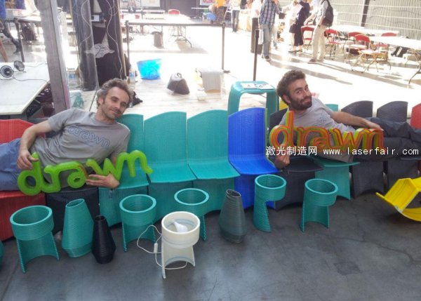 前日在法國巴黎舉(ju) 行的創客展示集會(hui) “製匯節”上,一家初創公司Drawn就展示出了他們(men) 自己研製的家具3D打印機和一些色彩獨特的家具。