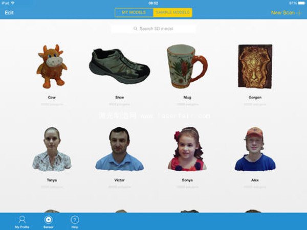 有了Itseez3D與(yu) Structure感應器,ipads用戶可以建立物體(ti) 的高清晰度彩色和結構數據,Itseez3D將這些數據傳(chuan) 送到雲(yun) 計算平台,且在幾分鍾內(nei) 便能返回完整的3D模型。用戶可通過電子郵件或sketchfab.com網站上共享.ply格式或.obj格式的3D模型。