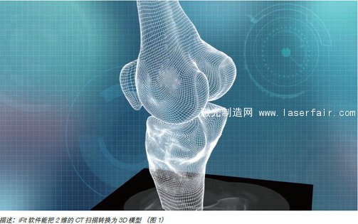這個(ge) 製造工序的其中一個(ge) 重要元素是先進的數字成像技術和3D 打印。使用3D 技術作為(wei) 這個(ge) 工序一部分來生產(chan) 一條針對特定病人的金屬膝關(guan) 節植入體(ti) 的完整產(chan) 品線,ConforMIS 是第一家這樣做的骨科公司。整個(ge) 生產(chan) 過程的第一步以患者髖關(guan) 節、受影響的膝關(guan) 節和踝關(guan) 節的CT 掃描開始,這樣可以確保在設計植入體(ti) 之前腿部重新校準於(yu) 中性機械軸。ConforMIS 使用一係列專(zhuan) 有算法來把患者膝部的二維CT 掃描轉換為(wei) 映射了關(guan) 節麵且能明確患病區域的3D 模型,這種技術被稱為(wei) iFit 技術。然後, 該軟件根據3D 模型設計每一個(ge) 定製的股骨和脛骨植入物以及儀(yi) 器。