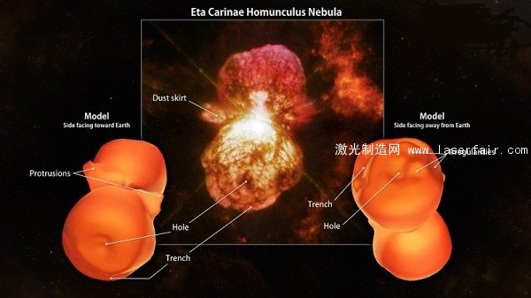 日前美國宇航局(NASA)研究人員不僅(jin) 成功地繪製出整個(ge) 海山二星(Eta Carinae)矮人星雲(yun) 的星圖,而且還製作出了該星雲(yun) 自19世紀爆發以來產(chan) 生的擴張雲(yun) 的3D模型。