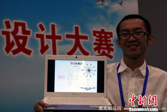 西北工業(ye) 大學團隊賽前演示參賽作品“誇父”高超聲速無人偵(zhen) 察打擊平台的3D打印模型。 孫自法 攝