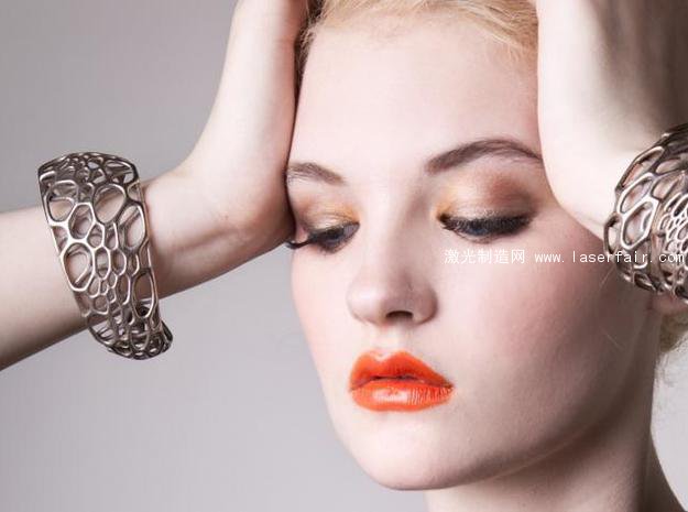 這款手鏈的靈感來自於(yu) 微觀細胞的結構,並利用計算機仿真和三維打印製造的。C形設計適合緊貼皮膚,材質為(wei) 不鏽鋼,表麵盡情拋光而成,重量輕,耗材少。圖源:shapeways.com