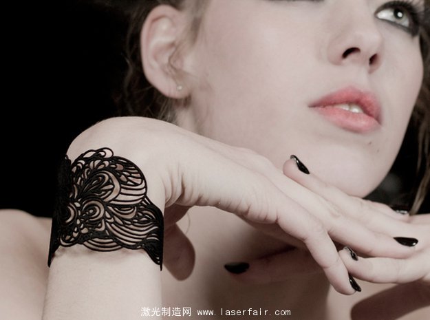 這款手鏈的材料是黑色的尼龍塑料,表麵還有一些微弱的顆粒感。黑色鏤空,將女性的性感誘惑魅力表現的淋漓盡致。圖源:shapeways.com