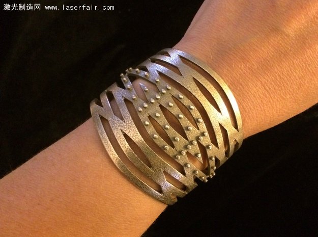 這款手鏈的材質是青銅,並且注入不鏽鋼,表麵可以看到印刷的線條還有一些粗糙的感覺。圖源:shapeways.com