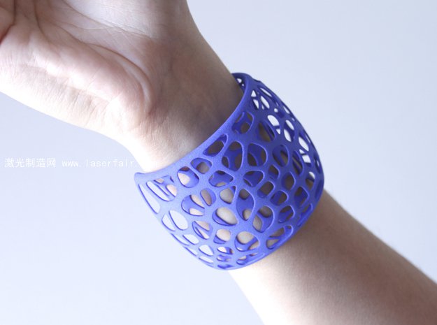 這是一個(ge) 開放的手鐲,設計有一個(ge) 平滑的維諾圖案,它重量輕,不易磨損。圖源:shapeways.com