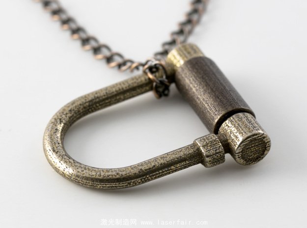 這是一款U型鎖吊墜,U型鎖部分彎曲不夠,可以把循環通過後彈出橫梁。圖源:shapeways.com