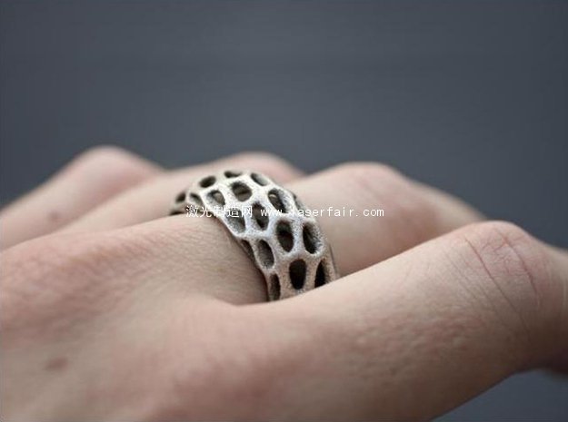 這款戒指是以白色尼龍塑料為(wei) 材料的,經過拋光之後有些微弱的顆粒感。圖源:shapeways.com