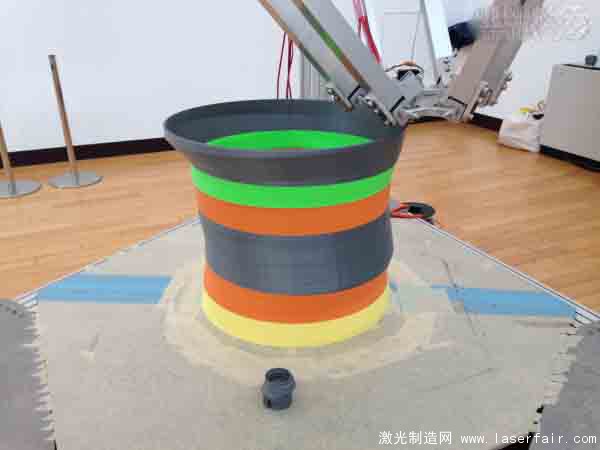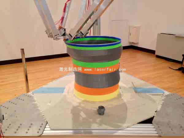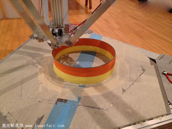 下麵是這台3D打印機的成果,可以看到,由於(yu) 機器過於(yu) 巨大,打印的精確度還是有問題,正在打印的一個(ge) 筒狀物有明顯的歪斜。