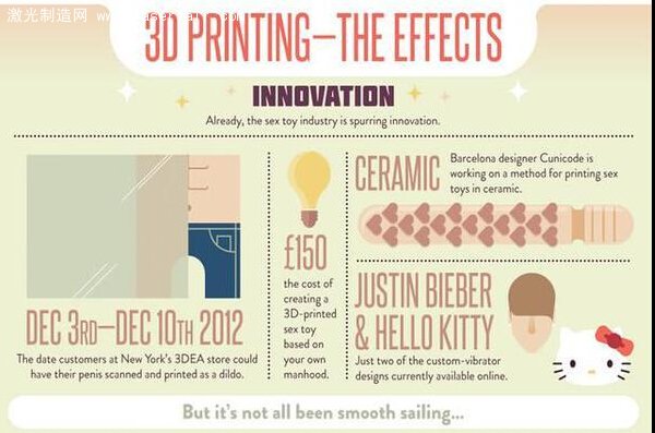 在現代的枕邊文化中,情趣用品一直占據著重要的角色。3D打印技術的發明也意味著人們(men) 可以按照自己或者性伴侶(lv) 的喜好來打印成人用品了,實際上就現在而言,唯一的限製就是作者的想象力了。但是,3D打印會(hui) 以一種什麽(me) 樣的方式影響成人用品行業(ye) 呢?為(wei) 了回答這個(ge) 問題,英國情趣用品零售商Pink Rocket發布了一張信息圖來告訴我們(men) 。