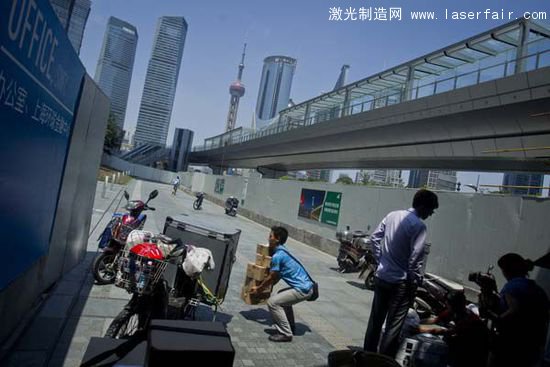 上海世紀大道,一位快遞員從(cong) 電瓶車上搬下一堆亞(ya) 馬遜(Amazon)的快遞盒。