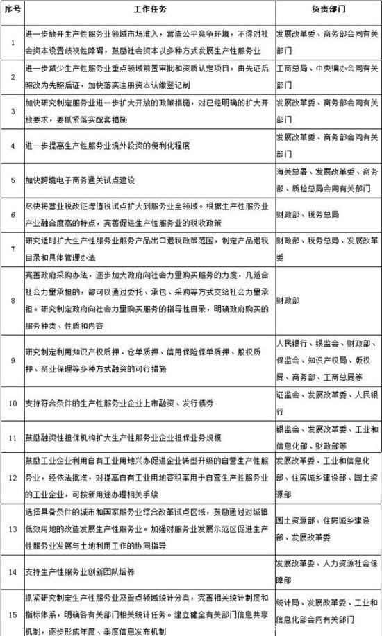 從(cong) 深化改革開放、完善財稅政策、強化金融創新、有效供給土地、健全價(jia) 格機製和加強基礎工作等方麵,為(wei) 生產(chan) 性服務業(ye) 發展創造良好環境,最大限度地激發企業(ye) 和市場活力。